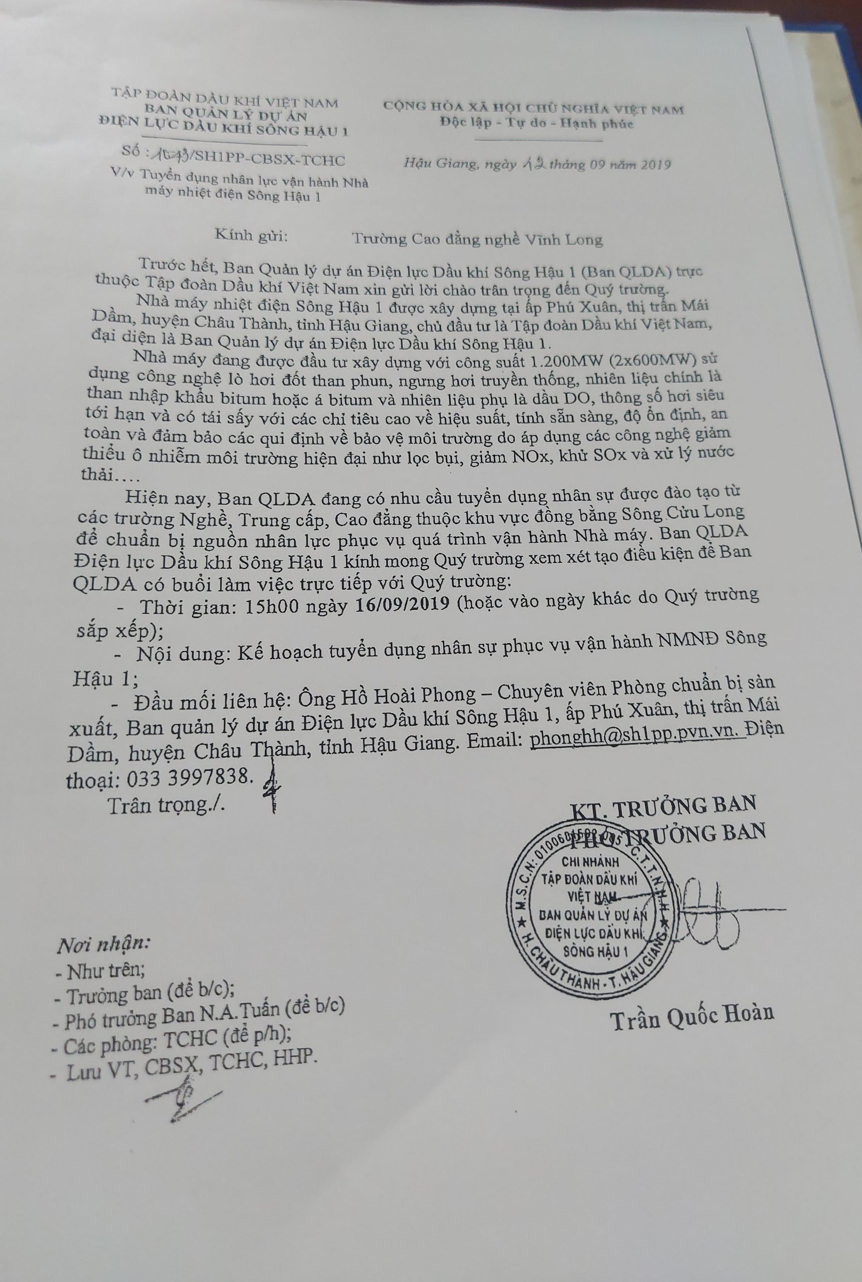 Thông tin việc làmBan quản lý dự án điện lực dầu khí Sông Hậu 1 Đăng vào 12/09/201922/05/2021 bởi Administrator 12 Th9 Administrator THÔNG BÁO CÔNG KHAI KẾT QUẢ TỰ ĐÁNH GIÁ CHẤT LƯỢNG CƠ SỞ GDNN NĂM 2019 Phát động Chương trình “Toàn thể cán bộ, công chức, viên chức, HS-SV trường Cao đẳng nghề Vĩnh Long chung tay bảo vệ môi trường Xanh-Sạch- Đẹp” năm học 2019