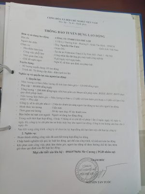 Thông tin việc làmCông ty THNN Tân Phú Lợi thông báo tuyển lao động Đăng vào 22/05/201922/05/2021 bởi Administrator Administrator Công ty CP Domenal thông báo tuyển lao động Công ty TNHH MTV DV Viễn thông Phương Nam (PCN TELECOM)