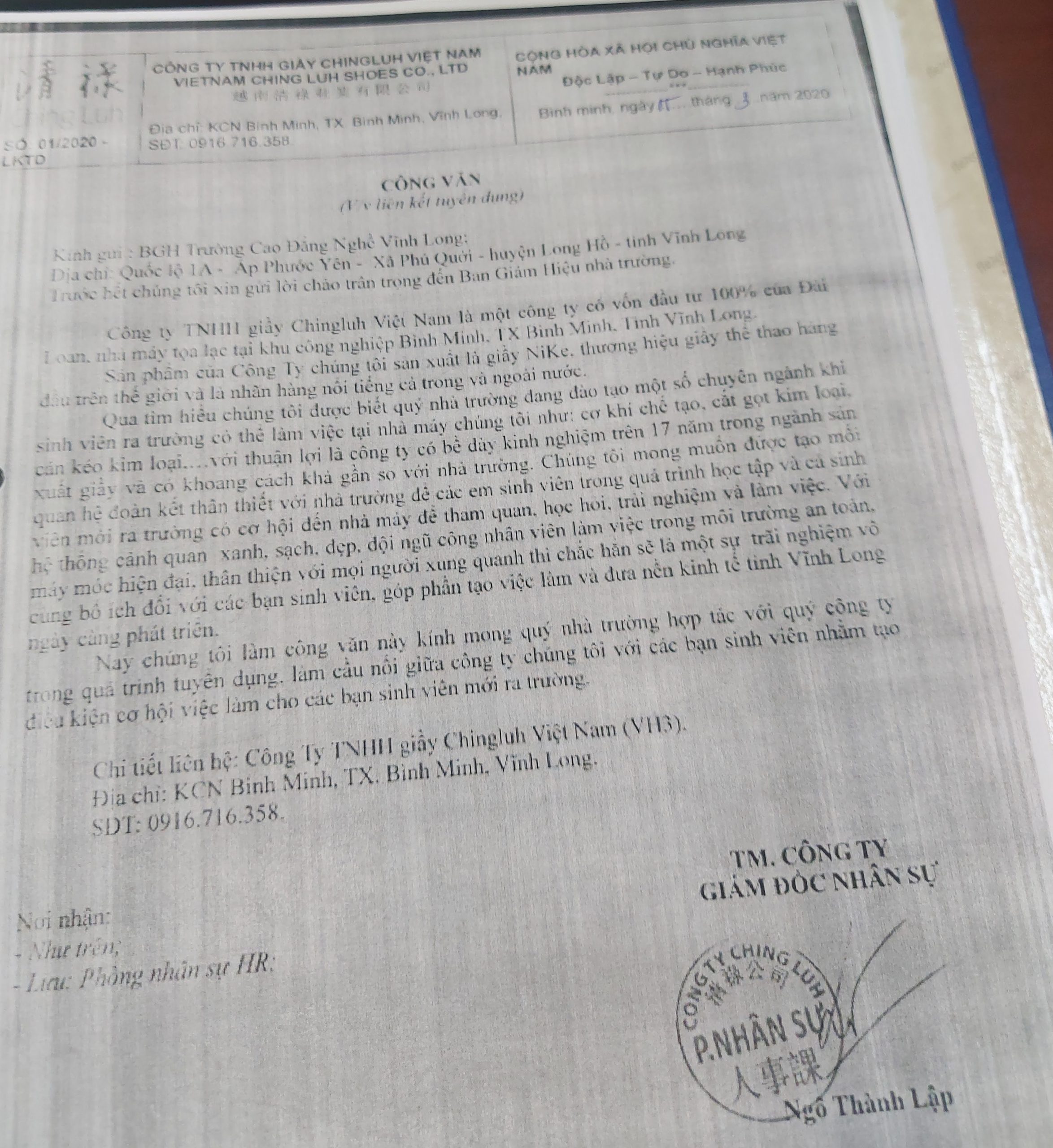 Thông tin việc làmCông ty TNHH Giày CHINGLUH Việt Nam liên kết tuyển dụng Đăng vào 15/03/202122/05/2021 bởi Administrator 15 Th3 Administrator Thông báo tuyển dụng viên chức TKB TUẦN 10 TẠI TRƯỜNG CĐN VĨNH LONG (Từ ngày 22/3/2021 đến 28/3/2021)