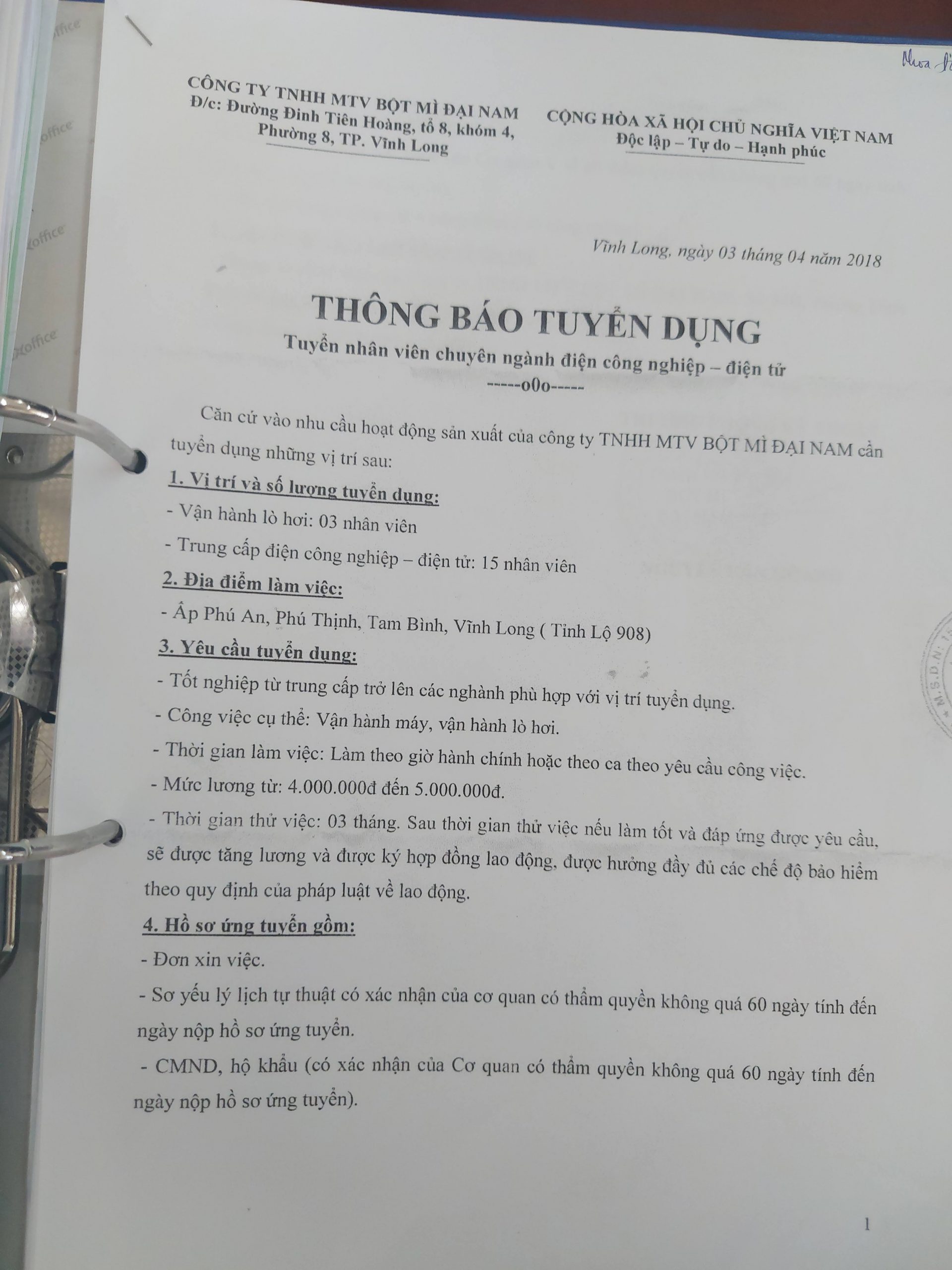 Thông tin việc làmCông ty TNHH MTV Bột mì Đại Nam tuyển dụng Đăng vào 11/04/201822/05/2021 bởi Administrator 11 Th4 Administrator THAM QUAN VÀ TƯ VẤN HƯỚNG NGHIỆP CỦA CÁC TRƯỜNG THCS HUYỆN BÌNH MINH TẠI TRƯỜNG CAO ĐẲNG NGHỀ VĨNH LONG Ban giám hiệu