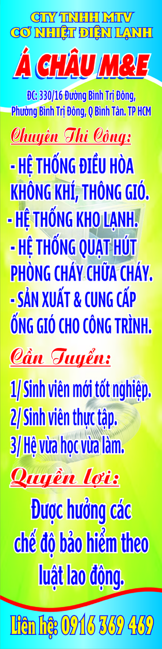 CÔNG TY TNHH MTV CƠ ĐIỆN LẠNH Á CHÂU M&E TUYỂN DỤNG