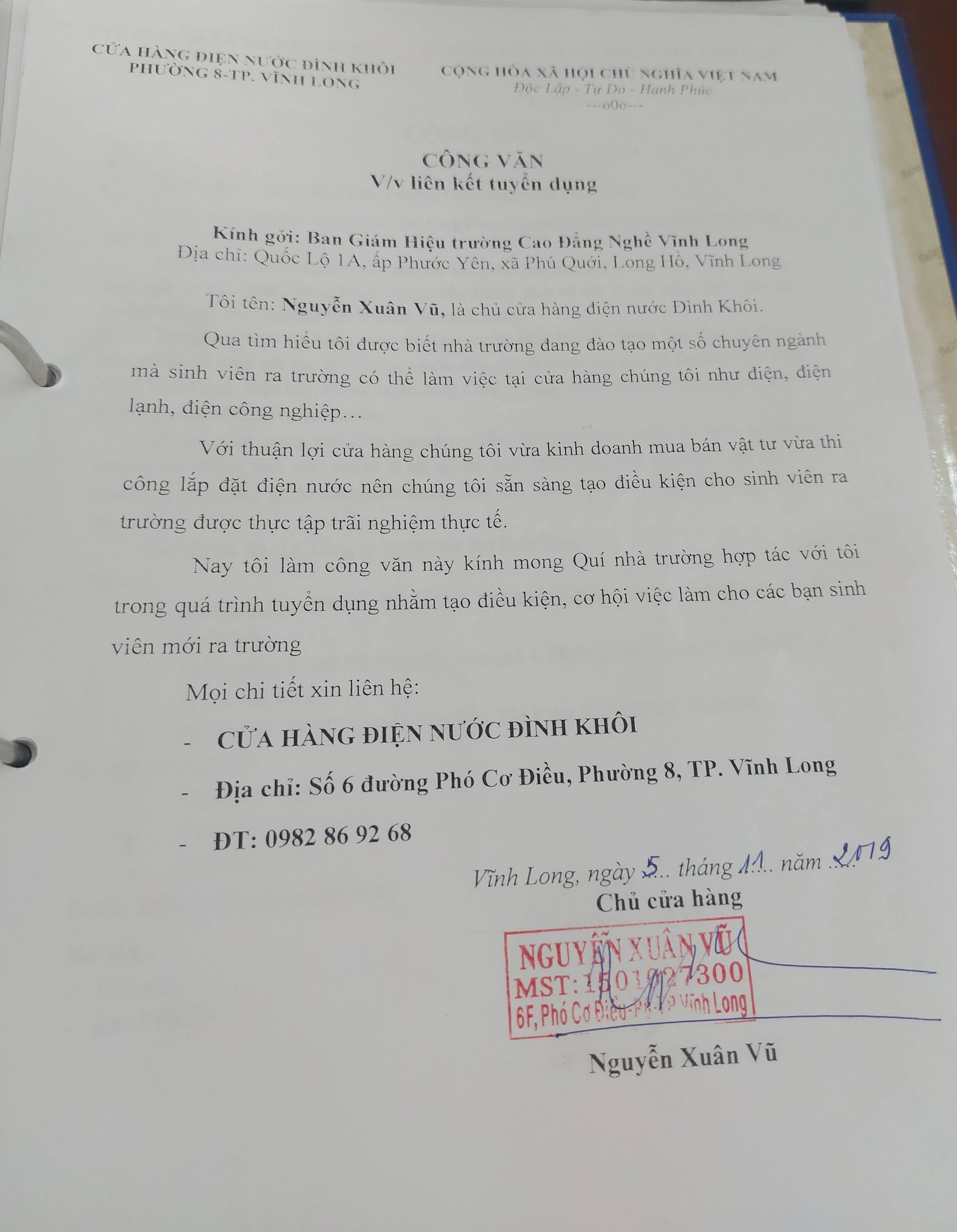 Cửa hàng điện nước Đình Khôi P8-TP.Vĩnh Long liên kết tuyển dụng